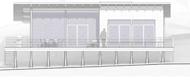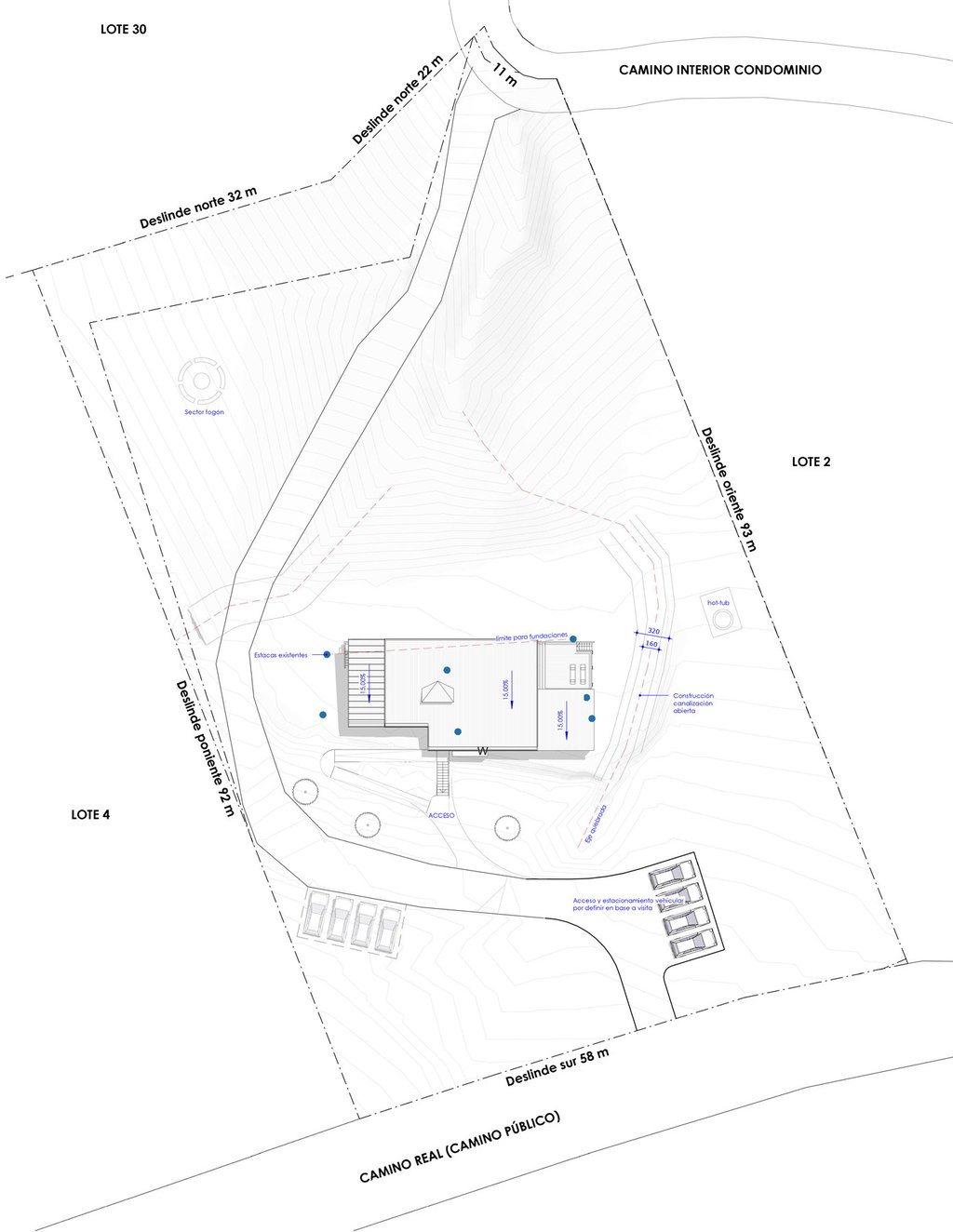 El techo se propone como un manto, originalmente vegetal, que da continuidad visual al cerro, se abre hacia la vista y produce recorridos perimetrales protegidos del sol y la lluvia, abundantes en la región.