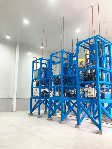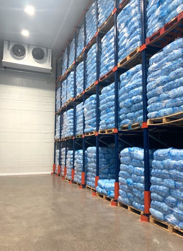 Dentro del área productiva se diseñaron dos procesos de recuperación de agua, principal insumo de producción. El primero recupera agua del lavado de pisos “limpios” mediante drenajes exclusivos para acumulación en un estanque dedicado al riego de las áreas verdes de la propiedad; el segundo recircula agua y hielo dentro del mismo proceso productivo para recuperar energía de enfriamiento y purificado del agua.