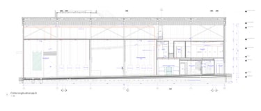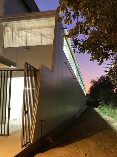 Producto de la postpandemia surgió la necesidad de ajustar el diseño original a un alza de precios muy relevante, lo cual se resolvió principalmente dividiendo la planta en tres edificios separados (producción y almacenamiento, administración, y mantenimiento), aprovechando las áreas de menor exigencia técnica para usar sistemas constructivos mucho más livianos y económicos.