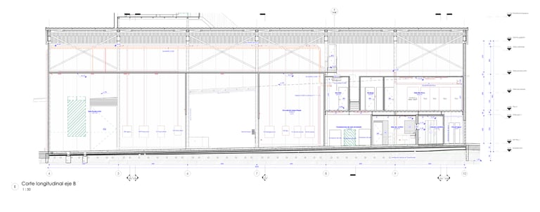 Proyecto industrial con frigorífico, área productiva refrigerada, área de mantenimiento y oficinas administrativas. El proyecto se desarrolló y coordinó completamente en BIM, incluyendo el modelado de todas las especialidades.