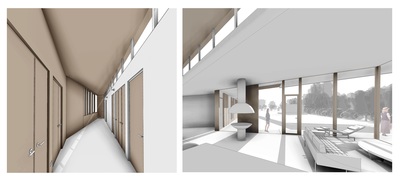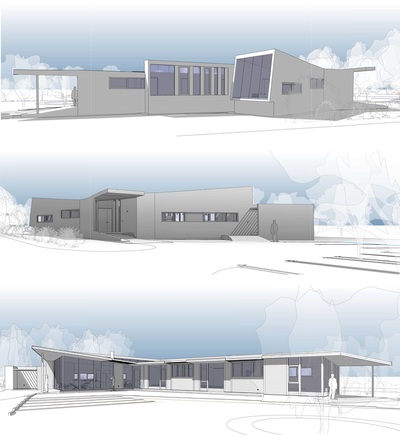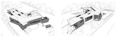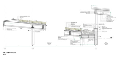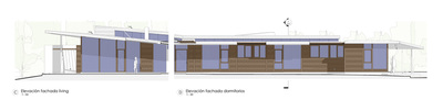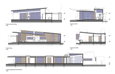 La propuesta genera dos volúmenes que se escalonan en la cubierta generando un rasgo de luz y vista cenital que recorre toda la casa. El volumen sur se trabaja con énfasis en las vistas hacia el cielo (nor poniente), controlando sus aperturas hacia el acceso y las circulaciones de la parcela (sur oriente). El volumen norte se abre completamente al terreno y considera una cubierta ecológica que mejora el confort térmico y el manejo de aguas lluvias. El sector público se trabaja como una planta libre que contiene el living, comedor y cocina; separados volumétricamente con la cubierta que se eleva hacia el norte. Hacia el poniente se controlan las alturas y dimensiones de los espacios más privados. La casa considera una estructura mixta de acero y madera, utilizando paneles SIP (Structural Insulated Panel) en muros y tabiques. |