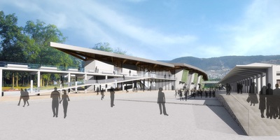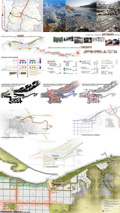 En este re pensar el cómo hacer ciudad, se distingue el emplazamiento del proyecto como un punto de gran relevancia urbana, al encontrarse allí un foco comercial, la llegada del histórico Ramal Talca-Constitución, la estación de buses de la ciudad y el encuentro del tejido urbano interior con el borde río. La propuesta urbana busca conciliar y poner en valor estas condiciones, opacadas completamente por el crecimiento no planificado de la ciudad, el deterioro del ramal ferroviario y el devastador tsunami que arrasó con el borde río. El proyecto aborda este punto de confluencias abriendo el límite del ferrocarril, permitiendo la relación visual y peatonal entre ciudad y borde, urbano y natural. El edificio se dibuja sobre este límite, relacionando ambas situaciones, y concluyendo en una estación que facilita la intermodalidad al mismo tiempo que genera en su entorno la puesta en valor del patrimonio y la identidad urbana. |