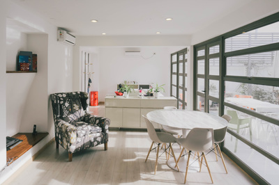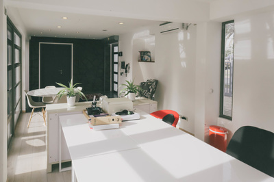 Superficie: 204 / 376 m2 Proyecto: Andrea Saleh , Salomón Barahona Año Construcción: 2013 - 2014 El proyecto consistió en la selección de una propiedad y su posterior rehabilitación y ampliación para ser usada como oficina. Se eligió una vivienda habitacional en mal estado pero con gran potencial en términos de iluminación, distribución interior, ubicación y visibilidad. Se realizó un estudio para la sociedad inversionista de manera que el proyecto se amoldara a las necesidades del mercado y fuese rentable para su arriendo con un uso lo más libre posible.