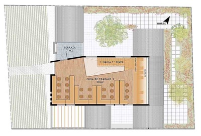 La propuesta programática consiste en la liberación y reorganización de los espacios existentes y la generación de una planta libre en segundo piso. Se concentran los servicios en torno a una galería que comunica espacial y funcionalmente toda la oficina. En términos formales la nueva construcción en segundo piso reinterpreta el lenguaje existente de la cubierta a dos aguas y se hace presente en el primer piso para imprimar un lenguaje vanguardista sobre la antigua casa habitacional. Se mantuvo toda la estructura existente, las vigas y cerchas de cubierta fueron reparadas y dejadas a la vista, al igual que la chimenea y los elementos originales de piedra. El resultado es una construcción habilitada como obra nueva, cuya imagen realza características originales y a su vez imprima la contemporaneidad y el diseño en una oficina que resulta cómoda, flexible en su uso y deseable como imagen corporativa. |