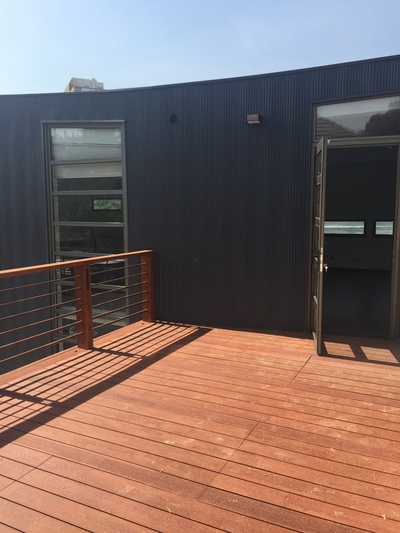 Superficie: 26 m2 Proyecto y Construcción: Andrea Saleh, Salomón Barahona Año Construcción: 2016 Como parte de una actualización de la propiedad, ya intervenida en 2013, se incorpora una terraza en segundo nivel que conecta visualmente la calle con el patio interior y otorga un espacio exterior de calidad para la planta libre en el segundo nivel de la oficina.
