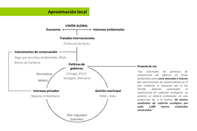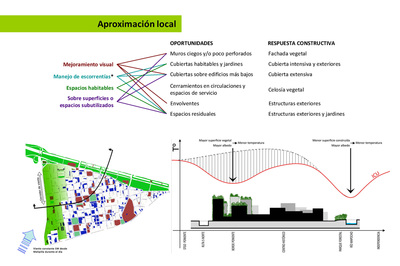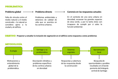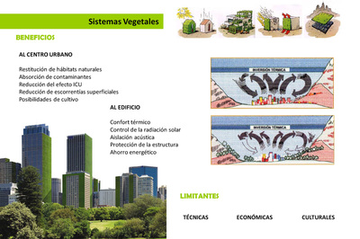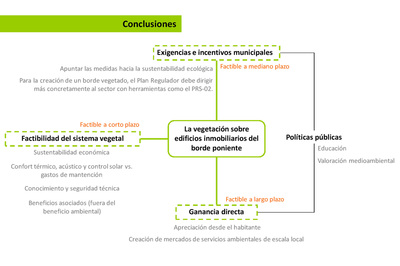 Se descubren los beneficios que puede aportar la vegetación en una obra construida, abarcando desde beneficios sociales y estéticos, aportes ambientales al centro urbano y aportes directos al confort del edificio; tales como la absorción de contaminantes, la disminución del efecto ICU, posibilidades de cultivo, adaptabilidad, confort térmico, acústico y visual, etc. Se estudian en profundidad sus posibilidades formales y constructivas, analizando para cada caso sus aportes cuantificables, ejemplificación de uso y limitaciones. Luego de entender cuáles son las oportunidades de la vegetación en un contexto urbano específico, y con una aproximación global de lo que significaría llevar a cabo planes generalizados de aplicación, se revisan los planteamientos económicos, intereses ambientales y privados, políticas públicas, gestiones municipales, instrumentos de conservación local y tratados internacionales que tienen un rol primordial a la hora de proponer la factibilidad real –a corto, mediano y largo plazo– de la vegetación como sistema constructivo compensatorio, concluyendo en ideas e hipótesis que abren infinitas oportunidades de desarrollo e investigación. |